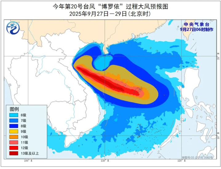 预计“博罗依”将于28日白天掠过海南岛以南海面,与海南岛最近距离约140公里,28日傍晚到夜间在越南北部沿海登陆。受其影响,华南沿海和南海海域将有强风雨天气。